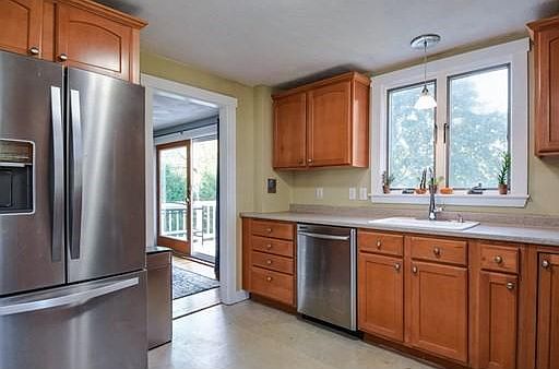 So well maintained! This charming in town colonial has all replacement windows, vinyl siding, and NEW high efficiency tankless hot water/boiler! Located on a dead end street with huge private yard and room to expand. Beautiful yard and gardens, with expansive deck for outdoor enjoyment. Hardwood floors throughout, including all bedrooms. The first floor office has cathedral ceiling and glass doors. Finished basement is great for playroom/exercise space. Cedar porch off of the cute kitchen with maple cabinets and SS appliances. Easy commute location. Hopkinton's highly rated schools! So much to enjoy at a great price!