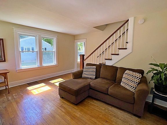 Home Sweet Home. Charming, well-maintained cape-style home located on a quiet, dead-end street in the much-desired Northeast section of Rutland, within walking distance to Northeast School, shopping, and providing easy access to Killington and Pico Ski Resorts. An arched entry with handy coat room leads to a light filled living room featuring a brick fireplace and adjoining formal dining room, complimented by hardwood floors and original finishes throughout. A spacious eat-in kitchen and first floor bedroom or office round out the main floor plan. From the living room, a classic craftsman staircase leads to the second floor which offers two additional family bedrooms, a generously sized full bath, and plenty of extra knee wall storage. Significant updates include vinyl siding, newer roof, replacement windows, heat pump water heater, and new oil tank. Enjoy an evening cocktail or BBQ on the western facing covered back porch overlooking a level backyard that is perfect for entertaining, gardening, or family play. Being sold “as is” at this price, with much opportunity for the next owner to make this home their own.