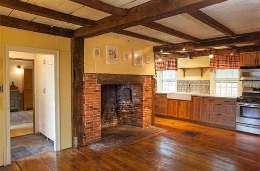 Restored 18th century post and beam cape featuring authentic wide plank floors, large beehive oven, cathedral ceilings, wood beams, and 3 brick fireplaces (1 beehive) and one propane fireplace in first floor master bedroom. This home was reconstructed with 1747 beams and was reconstructed in approximately 1986 on a poured concrete foundation and has updated mechanicals. Antique charm throughout with updated amenities in bath and kitchen and basement. Large fenced in yard with patio. Close to town and shopping. If you love antique charm you must see this house. Move in ready. Call today!
