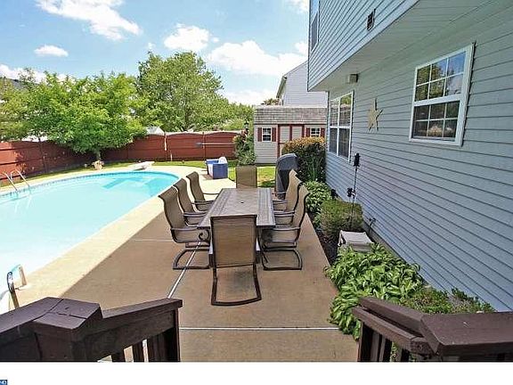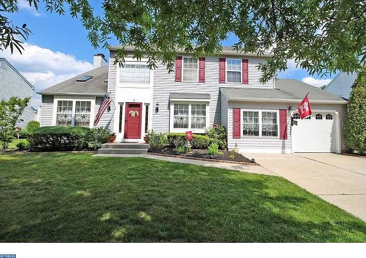 Fabulous two story Colonial in the secluded enclave of Bradford Chase with an open floor plan! Featuring a two story Foyer, grand spacious Living Room with soaring cathedral ceiling and two skylights allowing for natural sunlight all day long. Formal Dining Room with laminate wood look floors that flow into the Kitchen. Generously proportioned Kitchen with a great layout for entertaining with breakfast room, peninsula, pendant lighting, abundance of cabinets and is open to the adjoining Family Room in one direction and the Den in the other. Den offers flexible space for office/play area. Family Room with Slate Fireplace flanked by Windows has Glass Sliding Door to the Deck. This Four Bedroom, Two and a half Bath Home boasts a Master Bedroom Suite with Walk-In Closet, Master Bath with a jetted garden Tub and Full Shower Stall. There are three additional nice sized Bedrooms all with Ceiling Fans and ample closet space. Fantastic fenced back yard with large in ground gunite pool, deck, patio, shed with loft and well-manicured landscaping. Updated lighting and ceiling fans with lights. CLEAN & WELL MAINTAINED COLONIAL HOME ~~~~~~ Great Location in Marlton, Just Off Route 73 ~~~~Close to Major Highways and Shopping! If you combine a LOCATION that's close to amazing shopping, upscale restaurants, highly rated schools and medical facilities, movies, and major highways, but feels like you're in the country (sits in a community of just 40 homes), with a home that has been IMMACULATELY MAINTAINED.