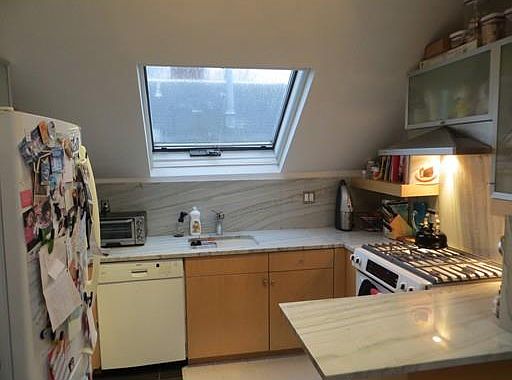 Treetop, light filled apartment midway between Central and Harvard Squares. Beautiful finishes abound in this renovated kitchen and glass tile bath. Open plan living room and kitchen with vaulted ceiling and huge skylights. In-unit laundry, private lockable storage room and deeded parking. Just moments to shops, restaurants, and the red line MBTA.