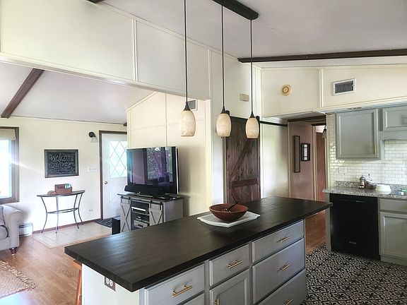Lake Wildwood LAKEFRONT Lots of room for your crew to gather! Spacious lakefront ranch with over 2000 sq of living area features main floor with updated kitchen with island and seating space, dining area and living room adjacent to large lakeside deck, three bedrooms and full bath. Lower level has large family room with fireplace, bar area with seating, sink, and mini fridge adjacent to lakeside patio and fire pit, office space, full bath, laundry, and garage. Stairs to lakefront with decking and dock with beautiful lake views in no wake area near East Beach. Lake Wildwood is a private recreational lake community near Varna, IL with over 1400 acres of rolling hills, woods, and meadowland within 2 hours of Chicago Suburbs. Association dues of $875/yr includes access to all amenities; 218 acre Lake Wildwood is a stocked all sports lake, 14 acre Lake Tanglewood is a stocked "fishing" lake, 2 beaches, pool, sports areas, clubhouse, pavilions, picnic areas, playgrounds, hiking area, member campground, activities, and 24/7 gated entry. Property is subject to Lake Wildwood rules, covenants, and by laws, including rights of first refusal. Entry pass required to view property.