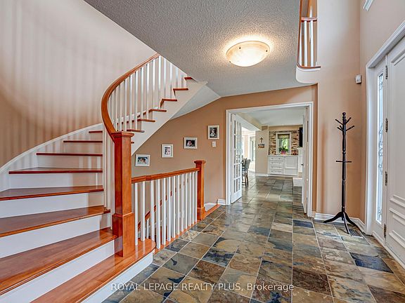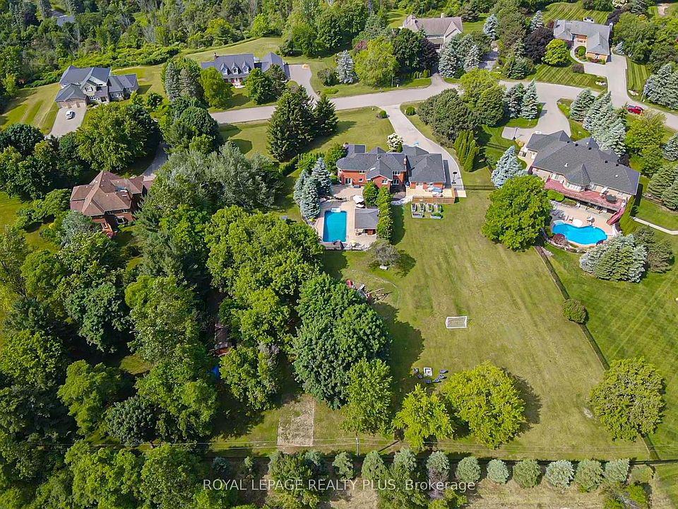 A rare opportunity to own an elegant estate with sweeping views of the Toronto skyline. Nestled on a beautifully landscaped, fully fenced lot, this remarkable property offers ultimate privacy and luxury. The grounds feature a saltwater pool with a dedicated pool house, an expansive covered outdoor pavilion with cathedral ceiling, fireplace, and theatre, plus a wood sauna, large workshop, and a long, gated driveway. Mature trees, iron fencing, and curated gardens create a truly serene setting. Inside, the home showcases refined living with generous principal rooms, stunning sightlines, and an open-concept design that blends seamlessly with the outdoors. The upper level offers four spacious bedrooms, including a serene primary suite complete with a walk-in closet and spa-inspired ensuite. The lower level is a warm, inviting retreat with entertaining space and a home office. A property of this scale, setting, and versatility is an exceptional offering just beyond the city.