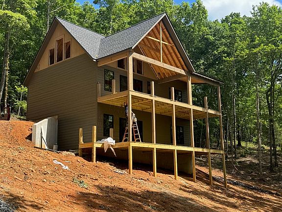 ONLY 3 SHORT WEEKS UNTIL COMPLETION! Located in the picturesque heart of Blue Ridge, prepare to be captivated by this contemporary mountain retreat that epitomizes luxurious mountain living. From the moment you step inside, you'll be greeted by the exquisite craftsmanship and masterful architecture that define this remarkable home. Step onto the luxury vinyl plank flooring and behold the accent walls adorned with raw rustic finishes, perfectly harmonizing with the modern elements throughout. Every corner of this home tells a story, exuding personality and charm at every turn. The grandeur of the light-filled great room is unparalleled, boasting soaring ceilings and a breathtaking linear fireplace that beckons you to unwind and relax in its cozy embrace. The open-concept design seamlessly integrates the spacious dining and kitchen area, creating a luminous space flooded with natural light, ideal for hosting gatherings and creating memories with loved ones. This home offers the luxury of two primary bedroom suites, each providing a haven of privacy and comfort on different levels of this thoughtfully crafted floor plan. Descend to the fully finished walk-out basement, thoughtfully designed with entertainment in mind. Here, a wet bar, expansive bonus room, additional bedroom, and full bath await, transforming the lower level into an entertainer's paradise. Retreat to the outdoor linear fireplace and soak in the panoramic mountain views (soon to be cut out) that surround you. This home is truly a one-of-a-kind gem, offering everything you need to experience the epitome of mountain luxury, from the upscale finishes to the quaint small-town charm of Blue Ridge.