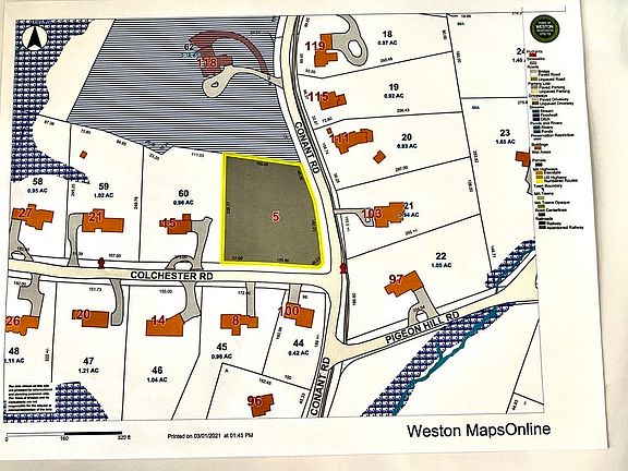 An extraordinary opportunity to build the home of your dreams on a beautiful one acre lot. Approved plans for a 4,397 SF home on two levels with 3 car garage plus optional 1,400 additional SF with finished lower level (total living area ~5,800). Fully engineered site with landscape design, valid NOI from Weston Conservation Commission, and septic design (4 bedrooms with garbage disposal). A rare and exceptional property approved and ready for building in one of Weston's most desirable neighborhoods. Building and site plans available upon request. Buyers to do their own due diligence. 2021-03-30