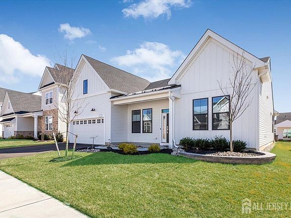 Welcome to 5 Cole Place, the only quick move-in 2 Bed/2 Bath Eason model available in Regency at Cranbury, Central NJ's premier 55+ Active Adult Resort Community by Toll Brothers. This beautifully designed home is available now, offering an effortless one-level living experience without the wait for new construction. A welcoming foyer opens to a bright front study/home office, ideal for remote work or hobbies. The expansive great room, enhanced by a striking 42'' Cosmo linear gas fireplace, flows seamlessly into the casual dining area. A wall of south-facing windows and expanded multi-panel stacking doors fills the space with natural light and leads to an upgraded covered patio with professional landscapingan outdoor retreat perfect for relaxation. A gas line is ready for grilling or future outdoor kitchen possibilities. The well-appointed kitchen boasts an upgraded quartz island and countertops, upgraded pendant lighting, and a designer tile backsplash. Enhanced crown molding on the cabinetry and additional pull-out trays offer both style and functionality. The serene primary bedroom suite is a private retreat, featuring a spacious walk-in closet and a superb en-suite bath with a dual-sink vanity, luxe shower with seat, upgraded Kohler Bellera fixtures, linen storage, and a private water closet with bidet. The secondary bedroom enjoys a quiet front-of-home location with an upgraded 33'' vanity in the adjacent hall bath. Additional highlights include stylish and durable luxury vinyl plank flooring throughout the main living areas, upgraded tile in the bathrooms, an easily accessible laundry area, and a convenient everyday entry. The expanded 2-car garage includes a walk-up attic for easy-access storage, eliminating the need for a basement. Nestled on a premium cul-de-sac lot with no thru-traffic, this home offers privacy and tranquility while still being close to the clubhouse, pool, fitness center, pickleball, bocce, and tennis courts, plus a putting green for endless recreation. High-tech enhancements include a Skybell video doorbell, wireless smoke and heat detectors, and pre-wiring for ceiling fans and light fixtures. Loaded with high-end upgrades and priced below the cost of building new, this home delivers exceptional value without the 11-month builder wait. A rare opportunityschedule your private tour today!