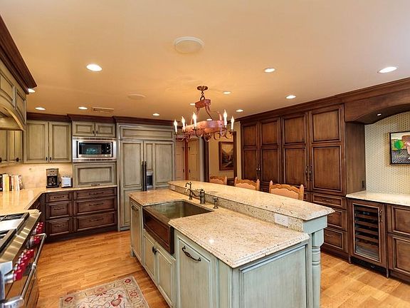 Beautifully renovated Colonial with tasteful designer décor is set on impressive lush lot. This timeless property features many updates for today's lifestyle. Living room features hardwood floors, fireplace and includes pocket doors to inviting family room with beamed ceiling, picture windows and custom built ins. Elegant dining room sets the scene for dinner parties and gatherings. Gourmet Chef's kitchen offers center island, refrigerator drawers, wine chiller and opens to sun splashed dining area with magical views of grounds showcasing stunning blue stone patio, outdoor fireplace, resort like pool with water fall and sport court all amidst mature trees, plantings and gardens. First floor office & study allows for excellent workspaces with custom built ins and breathtaking views. Master suite boasts vaulted ceiling, cove lighting, double walk in closets, private balcony and spa like bath. Lower level media room, game room, bar & exercise room add to this show stopper!