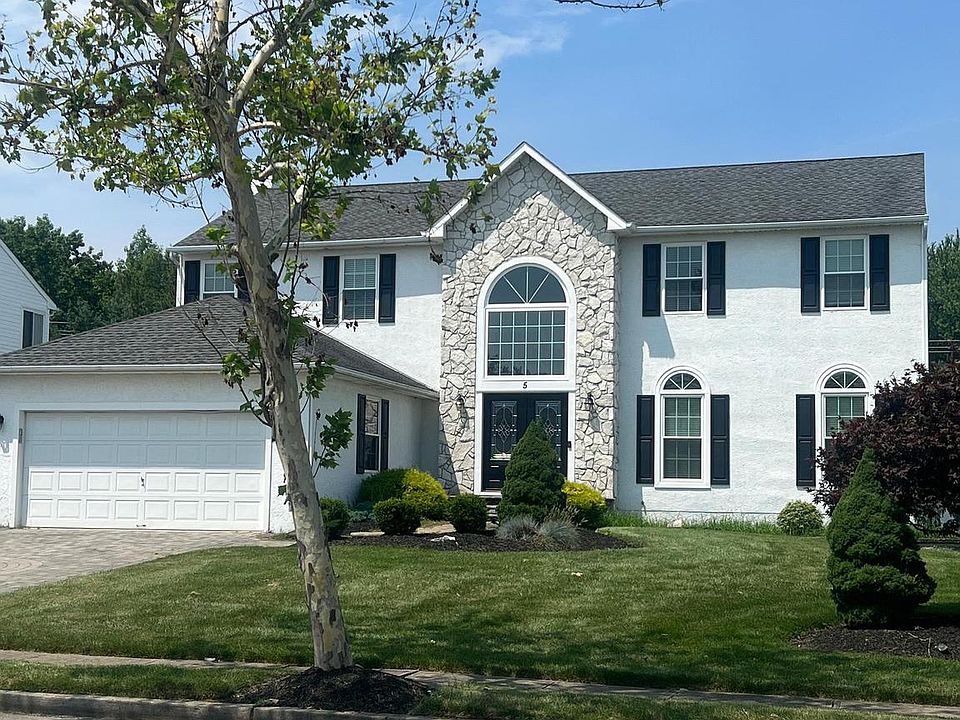 Welcome to this beautifully maintained home in the Ridings of Mayfair neighborhood in Marlton, NJ . This gorgeous home features 4 bedrooms and 2-1/2 baths , double entry leaded glass front doors and triple doors to the outside back patio. The main entry windows have plantation shutters with arched windows topped with drapes. Spacious living room, dining room and family room surrounding the eat in kitchen with great appliances and a kitchen island. There is a gas fireplace in the family room which also has brand new carpet. Off the family room is the downstairs 1/2 bath. There are stairs leading down to the full basement which has been sectioned off to several different rooms, there is an exercise room and a 2nd family or play room that have brand new vinyl plank flooring and an additional wall heater for extra comfort and a utilities/storage room. The laundry room is right off the garage on the first floor. When you head upstairs you will find three good sized bedrooms with a full hall bath to service them. The primary bedroom is a haven with Ceiling fan, recessed light, walk in closet with additional closet and attic access with a full primary bathroom with soaking tub and walk in shower. The driveway and patio are hardscaped and the yard is beautifully landscaped and fully fenced with a shed in the back yard. This home is a must see you can move right in and make it your own.
