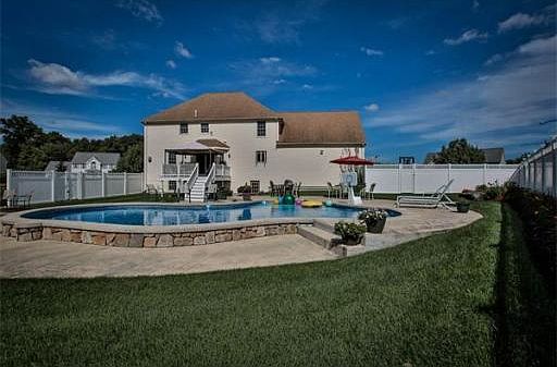 Stunning 4 bedroom 2 1/2 bath Colonial in prestigious Green Meadow Estates, featuring gourmet eat in granite kitchen flowing out to deck and magical back yard with custom in ground pool. Formal dining room, front to back fireplaced living room, master bedroom suite with cathedral ceiling , 2nd floor expansive family room and 2nd floor laundry. Three car garage, irrigation & professional landscaping. Is it time to bring joy to your family & have special moments with your friends? This magnificent pool and stamped concrete patio with a raised beam is an Easton Pool & Spa permacrete pool which was custom built by the owner of the company. The stairs and sun bench are reinforced concrete, the pool liner is 28 gauge stain resistant custom built . Including a high efficiency pool heater with an in floor heating system to maximize heating efficiency and a color logic light which changes the lighting in the pool to different colors at the push of a button. Every bell & whistle!!