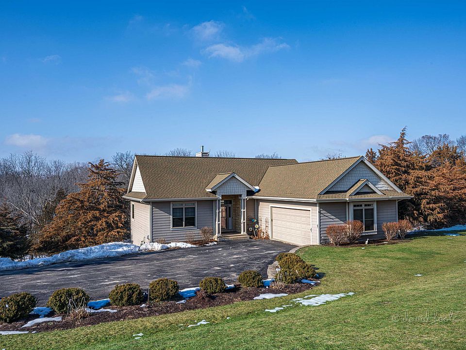 Contemporary ranch style home with 2 car attached garage for sale. Please check out 5 Copperwood Gap, Galena, IL 61036. Are you looking for a home that offers main level living and fiber optic internet? This beautiful home features a master bedroom on the mail level with it's own private bathroom suite with jetted tub, in floor heat and large walk-in closet. Home offers an open floor plan that encompasses a spacious living room with a gas fireplace, dining room and kitchen. Kitchen offers granite counter tops, an electric stove/oven and built-in microwave. Immediately off the kitchen/dining room is the relaxing 3 seasons room. Leading off the dining room is a 26'x10' composite deck for outdoor entertainment. Also, let's not forget about the half bath and main floor laundry rooms. Heading down to the lower level, there are 2 large bedrooms each with their own full bathroom offering in floor heating and large walk-in closets. Additionally, there is a large family room great for entertaining with patio doors that gives you access to the backyard. HOA fees apply at $1360 annually, transfer fee $500/$150, C/R apply, see The Galena Territory website for additional information. Square footages are approximate and provided by Jo Daviess County Assessment office. Survey on file at listing brokerage office. Please take shoes off during showing. There is an active radon system installed located in the crawl space in the attached garage. Ariel view is estimated boundary lines, not a survey.