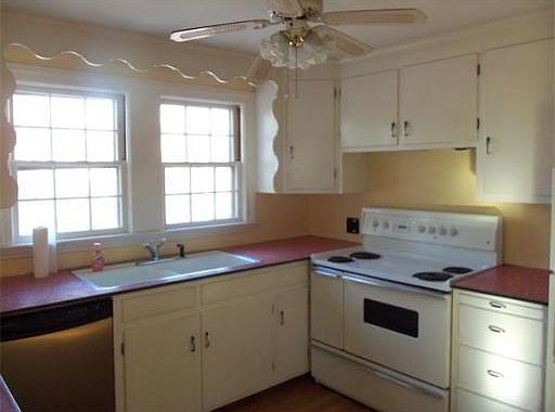 Charming Cape Codder with 2 lrg bedrooms & one full bath. The main living space is all on one level with a full walk out basement & one car garage. Basement is partially finished w/a lrge built in work bench, built in storage shelves & lrg laundry area. On the main floor are two bedrooms, bath, kitchen, living room & three season sun room. Bathroom is recently remodeled with wainscoting a cast iron tub, & a vanity w/built in storage/shelving. Mstr Brm has double closets & is slightly larger than bedroom #2 (w/a roomy closet). Down the hall is the eat-in kitchen & living rm. Both are large with plenty of living space.The eat-in kitchen is charming w/floor to ceiling built-in & features a cast iron double sink, range & dishwasher. Living Rm has an attractive working brick fireplace w/mantle & is wired for surround sound. The three season sun rm is directly off the kitchen w/a vaulted ceiling & double ceiling fans w/wood detail & double French doors that open to a spacious treed backyard!