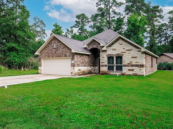 Welcome to Lake Livingston's premier golfing county club community. All brick & stone and just 3 years old with quality features: high ceilings, LED lighting & ceiling fans, wood look tile throughout, wood burning fireplace with built in shelving, hall has built in cabinets, coffee bar, pet door. The kitchen has 42" cabinets, pot & pan drawers, spacious utility room, granite counters, under counter lighting and spacious pantry. The Primary bedroom has a high trey ceiling and the bath has double sinks, large separate glassed in shower, and inviting jacuzzi tub. The large closet has built in drawers and shelving for all your needs. Three other bedrooms are large (see the room sizes) with plenty of room for office space or sitting areas. This is considered a very secure waterfront community with a 24 hour access gate, 18 hole golf course, pickle ball & tennis courts, pool, gym, marina, RV & Boat storage area and access to Marina Village RV Campground. Call agent for more information.