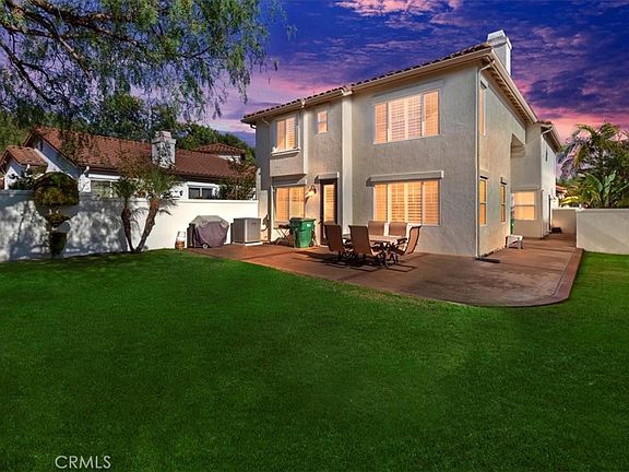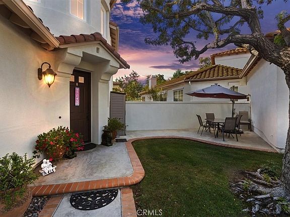 Wonderful home on a quiet cul-de sac street and a large lot in the Montecito Tract! Entering the wrought iron gate and courtyard there is beautiful fountain and a private front yard. This bright and cheerful home has an open floorplan with new decorator paint inside and out, cathedral ceilings, and an updated kitchen with newer appliances & white cabinets adjacent a family room with fireplace, and a main floor secondary bedroom with bath. On the second level there is a beautiful retreat with built-in cabinets and is a wonderful office or reading area. There are three bedrooms upstairs including the master bedroom with updated bathroom cabinets and a large walk-in closet. This newer floor plan has an upstairs laundry room and the bedrooms are ample in size. This home has been impeccably maintained with a newer garage door, rain gutters, newer AC, owned and paid off solar. One of the best features of this home is the large rear yard which is a pool size lot and enough space for entertaining or creating a wonderful retreat. Located in prestigious Coto De Caza with a world class country club, hiking trails close to award winning schools and first rate dining and shopping.