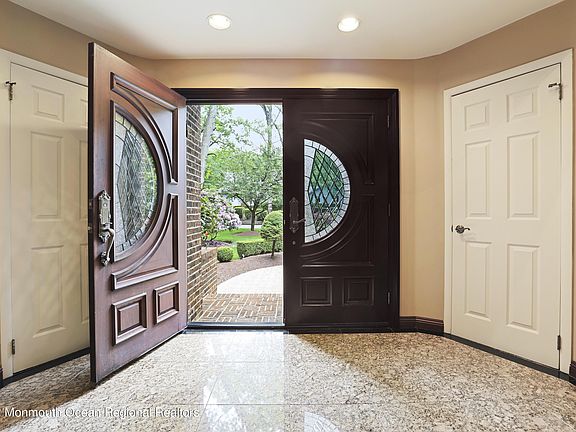 This is the one! Great neighborhood, great house, GREAT backyard! Stunning custom home on the Marlboro/Colts Neck border. Over 5300 sq ft on 1.83 wooded acres! 5 bedroom, 4.5 bath. 2 story foyer, formal living room, dining room, family room w/gas FP, powder room, eat in kitchen w/high end SS appliances, center island, granite counters, Laundry room, First floor in-law suite, great room with vaulted ceilings, built ins and gas FP, Conservatory w/ hot tub and FP. Second floor landing w/seating area. Opulent master suite w/vaulted ceiling,, FP, sitting room, tons of closets, luxurious master bath double vanity, whirlpool & shower stall. Full finished lower level w/rec rooms, full bath, fitness & tons of storage. The backyard is paradise- Deck w/gas grill, in ground pool, koi pond, outdoor lighting, beautiful landscaping, dog run, sheds, all backing up to woods. 5 car garage. Whole house generator.