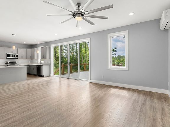 Enjoy the modern luxury of newer construction (2020) and wooded privacy on nearly an acre in beautiful Leicester. Lawn service included! Under 15 miles to downtown Asheville or Weaverville and under 10 miles to Marshall. Approaching roads offer long range mountain views as they wind through countryside. This home is set up for comfortable living, inside and out. Thoughtful design incorporates a smart floor plan, big windows for natural light and wooded views, large closets, nice light fixtures including recessed lighting, and ceiling fans throughout. Efficient heating and cooling provided by the thermostat-controlled, ductless mini-split system. Elements for relaxing outdoors are in place: a large deck, grassy yard, and a fire pit with boulders and outdoor lighting. Please note that the fire pit lighting will remain for tenant use but will not be repaired or replaced by the homeowner. The front porch and rear deck are constructed with durable, splinter-free Trex decking. The open living room, dining room, and kitchen benefit from four-panel glass sliding doors which open onto the big deck with awesome wooded views. The kitchen has great work space including a peninsular bar, quartz countertops, and plentiful attractive cabinetry. Kitchen appliances include the French door refrigerator, electric range, microwave, and dishwasher. Bedrooms are on either side of the generous entry foyer. The primary bedroom has charming barn doors to access the walk-in closet and en suite full bathroom. This bathroom has a double sink vanity and a step-in shower with pretty tile. The spacious hall bathroom includes a combination shower/ bathtub and laundry. The stacked washer and dryer will remain for tenant use, however, these appliances will not be repaired or replaced by the homeowner. Attractive luxury vinyl plank flooring throughout. Paved driveway and parking. Lawn mowing included. Well for water and septic system in place. French Broad fiber internet available. Tenant responsible for all utilities including internet/cable, electricity, and trash collection. No smoking. No cosigners. No pets.
