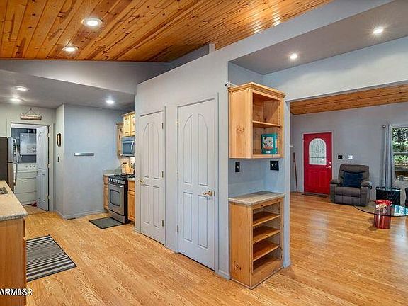Charming 2-Bedroom, 2-Bathroom Home in Alpine's White Mountains Nestled in the heart of Alpine, this fully-furnished 2-bedroom, 2-bathroom home offers the perfect retreat with a split floorplan for added privacy. Set on a spacious half-acre lot, the property features a fully finished 2-car garage with an adjoining workshop and extra attic storage for all your needs. Step outside to a large, custom covered patio in the back — ideal for entertaining or relaxing while surrounded by the tranquility of nature. A smaller covered front porch adds to the welcoming curb appeal. Inside, the great room is a showstopper, with Flagstone rock behind a raised heritage wood stove, perfect for cozying up in cooler months. The entertainer's kitchen boasts a gas range, alder cabinets, and plenty of counter space for food prep. Tall windows throughout flood the home with natural light, creating a bright, airy atmosphere. The double doors lead into the spacious primary bedroom, complete with a massive walk-in closet. The master bath offers a luxurious garden jacuzzi corner tub, a separate walk-in shower, and a large dressing area, perfect for unwinding after a day of adventure.The second bedroom has a Murphy bed so it can be used as a bedroom for guests or as a hobby room or office. The lot is peaceful and timbered with pine, oak, and aspen, creating a serene natural setting. You'll be just minutes from lakes, hiking, fishing, hunting, streams, and off-road trails, offering endless outdoor recreation. Plus, it's a short 40-minute drive to the Sunrise Ski Resort for winter sports enthusiasts. This home is a true Alpine gem  offering comfort, beauty, and access to all the outdoor activities the White Mountains have to offer.