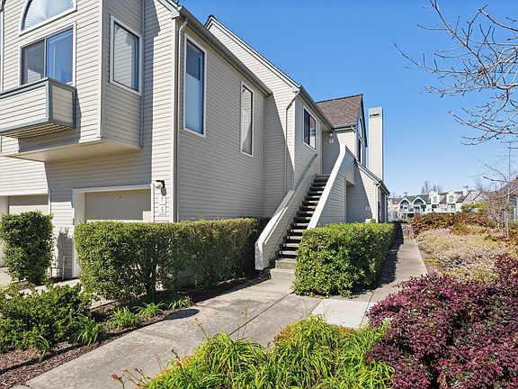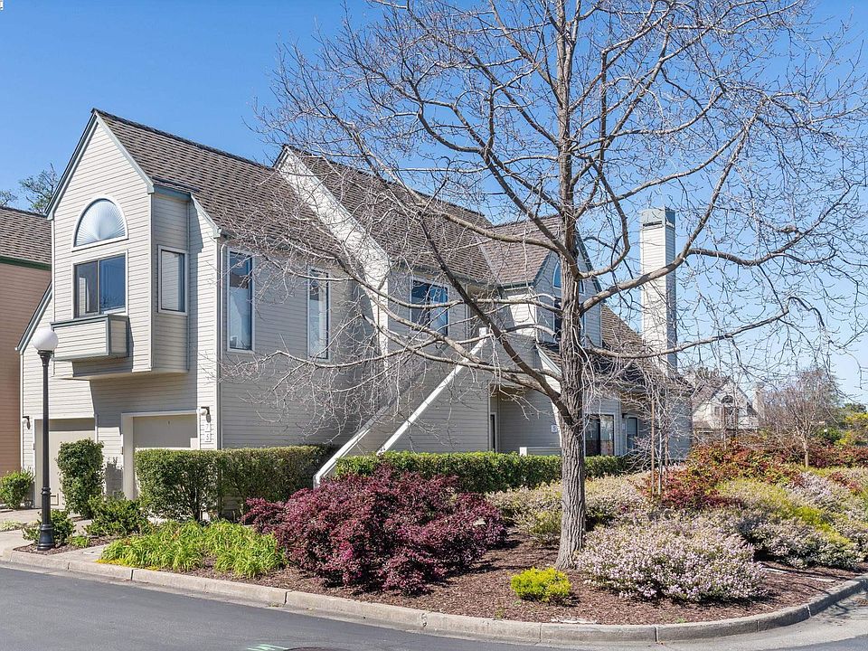 Homes like this don't come along often! This GROUND FLOOR, level-in, MARINA VILLAGE condo has 2BD/2BA and a backyard that stretches the length of the home; from living room to en suite! The living room features a wood burning fireplace and sliding glass doors. The updated kitchen has recessed lighting, newer appliances, & a window over the sink with peek-a-boo views of the water; enabling you to stay connected with guests. In the hall outside the kitchen is a closet that was cleverly converted into a pantry. The formal dining room off to the other end of the kitchen has a designer pendant light. Rich HWF throughout (excluding bathrooms). The primary en suite has spacious closets, dual sinks, vanities with lights, bathtub, & more of those water views - enjoy them without even getting out of bed! The 2nd bedroom is located down the hall where there is also a guest bath, laundry closet with stacked washer/dryer, and interior access to the 1-car garage with bonus storage space. If you haven't been to Marina Village, you should stop by. This is truly a special place to live. Residents have access to a pool & spa. Pet friendly! Quick access to shopping/dining, and the Posey tube for access to Oakland & beyond. This home feels like it's a private oasis in an urban setting. A must see!