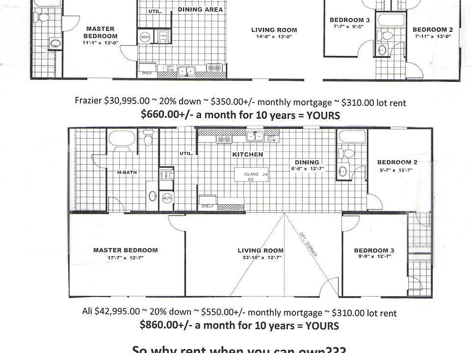 USE YOUR 2014 INCOME TAX RETURNS TO BUY A NEW HOME! WHY RENT WHEN YOU CAN OWN WITH JUST 20% DOWN??? 1 year rent @ $600.00 a month = $7,200.00 2 years rent @ $600.00 a month = $14,400.00 5 years rent @ $600.00 a month = $36,000.00 10 years rent @ $600.00 a month = $72,000.00 !!!!!!!!!!!!! AND IT IS NOT YOURS !!!!!!!!!!!!!!!!!!!!!!!! We have several homes available including The Frazier, Sugar Ray and Ali. The Frazier is a beautiful 3 bedroom 2 bath singlewide setup in our community for $30,995.00. The Sugar Ray is a beautiful 3 bedroom 2 bath singlewide with a large 8' x 28' deck and can be ordered and setup in our community for $30,995.00. The Ali is a beautiful and spacious 3 bedroom 2 bath doublewide setup in our community for $42,995.00. These prices included delivery, setup, front and back decks (Sugar Ray has one large deck), skirting, central air unit, stove and refrigerator. WE HAVE ON THE LOT FINANCING AND CAN WORK WITH ALL TYPES OF CREDIT ISSUES. If a new home is not what you are looking for, we have pre-owned homes available as well. !!!!!!!!!!!!! AND IT IS YOURS !!!!!!!!!!!!! Please give me a call at your earliest convenience so we may discuss your wants and needs in more detail. **This home should be arriving on site in a few weeks**