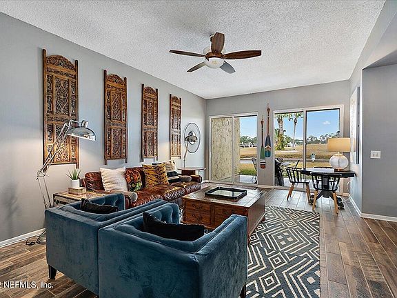This fully furnished, turn-key 3 bedroom condo enjoys breathtaking views across the 7th fairway of the East course, flanked by sparkling water on both sides. All on one level, this spacious ground floor unit features an open floor plan and has the feel of a single family home with plenty of room to spread out. Both the great room and the charming sunroom with tongue-and-groove ceiling have walls of glass to enjoy the commanding view. The owner's suite is privately situated in its own wing, totally split from the two guest rooms. Owner has just replaced popcorn with brand new smooth ceilings throughout. An ideal location within Sawgrass, it is just a short walk or bike ride to the private beach access and shops and restaurants at Sawgrass Village. It even has an exterior storage closet for your bikes and beach gear. Perfect for an investor, lock & leave vacation getaway or resort-style year-round living. Offered turn-key...you won't need to bring a thing! The rental history and VRBO reviews are excellent. Come see for yourself!