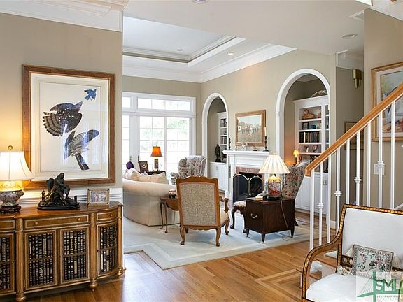 Located on desired Coventry Close, this exquisite "custom in every way" patio home features a handsome paved driveway and a beautifully landscaped wrought iron partially enclosed area in the end of the home packed with a stunning view of a great lagoon and the 17th hole of Plantation course. It's design, soaring ceilings and floor plan set it apart. First floor offers: Master suite, separate Living & Dining Rooms, Family Room, with terrific built-ins open to an updated Kitchen, all featuring handsome crown molding and wainscoting accented by richly painted walls, a large powder room and Laundry room with built in desk. Its second floor offers two Guest Rooms each with a private bath (one being used as an office), as well as a large Bonus Room offering great space & handsome built-ins accented with bead board. This home & its setting are truly a site to behold!
