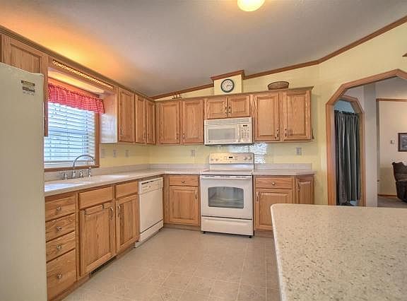 This home is located in Creek View 55+ Adult Community which has 1550 Sq ft of living space with 2 bedrooms 2 full baths, formal dining/morning room, and an efficient kitchen with nook. Enjoy your evenings on you 8'x28' covered front porch. This home has an attached 12' x 24' fully dry walled 1 car garage with additional storage in your 12' x 14' exterior shed that has electric. All this and many more great features for this hom