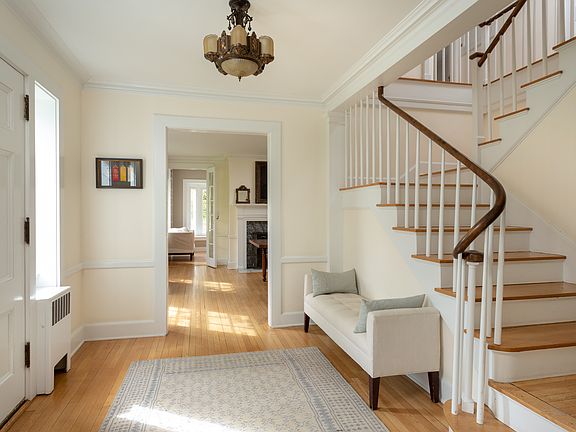 Tasteful updating meets classic design in this perfectly situated 1920 colonial. Minutes from Great Barrington, and with total privacy, this elegant, sun-filled 4 bed/3.5 bath home has been renovated to exacting standards. The kitchen is a chef's delight, with an AGA stove, quartz countertops, wall-mounted pot filler, farmhouse sink, two pantries, and radiant floor heat. Two original stone fireplaces highlight the stately living and dining rooms, which connect to a cozy den and bright sunroom. Upstairs, the master suite dazzles, with a copper soaking tub, large walk-in shower, and radiant floor heating. A 3-bay carriage house offers additional living quarters, with two bedrooms and a full bath. Located in Egremont, on 4.8 acres, with fiber optic Internet, low taxes, and complete privacy.History lovers will further relish the many whimsical reminders of our past, including a functioning servants' call box, dairy door, and original rotary dial phone. And nature lovers will cherish a State Champion burr oak tree, the largest of its kind in the Commonwealth, believed to have stood tall and proud in this very spot since before the arrival of the Mayflower. Other notable trees on this park-like property (formerly an apple orchard in the early 20th century) include apple, walnut, cherry, beech, red oak, dogwood, and beech.Close to The Barn, Egremont School, Egremont Library, Spirit Shoppe, and the Old Mill.5 Creamery Road - an exquisitely updated colonial home, offering a rare combination of history, nature, and modern convenience.