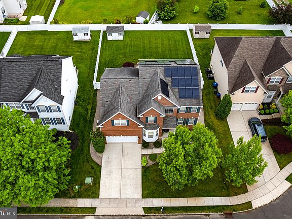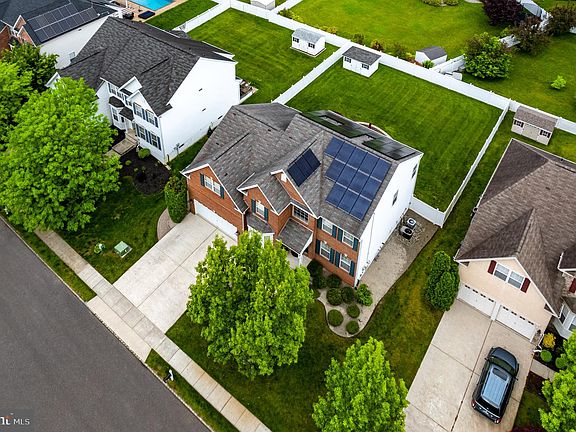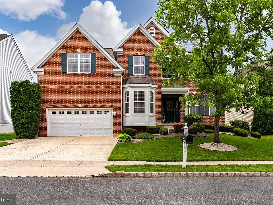 In the well-established community of The Preserve at Meadow Run is the South West to West facing location of this red brick facade beauty. The 2 story foyer features hardwood floors, detailed trim work around the door frames and openings, as well as chair railing. The generous sized formal sitting room is detailed with crown molding and recessed lighting. The windows allow an abundant amount of brilliant natural light that permeates throughout the room into the adjoining open formal dining room, also with beautiful moldings and large double windows. Double doors lead you to the home office conveniently located off of the foyer, so that you are not disturbed. Currently it is being used as an additional bedroom. The half bath is tucked between the office and the family room as well as access to the 2 car garage. Get cozy in the family room with its 2 story vaulted ceiling with recessed lights, gas fireplace and warm sunlight through the 3 expanded windows. The open eat-in kitchen features a generous amount of 42” maple cabinets, granite countertops, an enormous deep double sink with a separate instant filtered water tap and a top of the line Samsung Stainless Steel appliance package. Sliding glass doors direct you to the fenced in backyard and a massive beautifully designed paver patio where you can enjoy time relaxing and BBQing with guests. On the second level of the home is the immense sized master suite with 2 closets, one being a walk-in, and the ensuite features a double sink vanity and a Jacuzzi soaking tub. Three sizable guest bedrooms are also on this floor that share a full hallway bathroom. You will be ecstatic about the laundry room being on this level as well! No more carrying heavy laundry baskets up and down the stairs! The basement is fully finished and includes a home theater system. The space is wide and open, an ideal rec space. There are also several storage areas. Other attributes include a 6 zone sprinkler system, Ring Alarm, Nest thermostat and energy efficient leased solar panels. *The light fixtures are negotiable*. Be comforted with being on a dead-end street with no traffic and a block away from the playground. This location is an ideal place to live for commuters. Only minutes away from 295, 206, 130 and the turnpike. Make a showing appointment today!