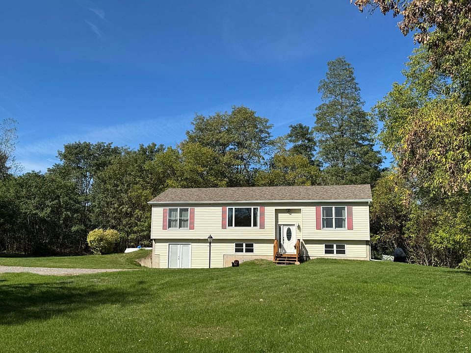 Imagine owning a 3.83 acres property with a 3 BR and 2 full baths raised ranch house right outside of the city?! Private and within less than 5 minutes of downtown but without the high taxes! Finish the basement (more bedrooms? a game room? etc) and double your square footage! The furnace has the additional load capacity to heat the extra future living space in the basement. Or put in a 2 bay garage (all you need is to frame the opening) since the cement floor was designed for it, and there is drainage already installed; you would still have some room left for additional living space. You will be pleased to know there is municipal water. As for the many upgrades: new roof in 2019 along with new seamless gutters (2020), new furnace in 2017, new water heater in 2016, new hardwired smoke detectors (2023), and all new windows (except for dining room and kitchen). New light fixtures in 2023. The septic was visually inspected and pumped in 2019. Come take a look! And the best part, it is PRE-INSPECTED already!