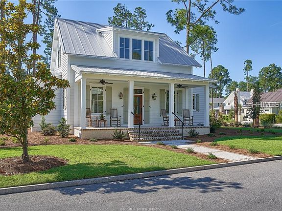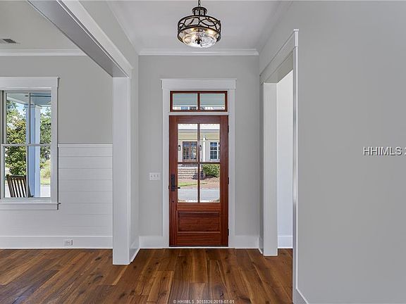 Located in the River Road community of Palmetto Bluff, 5 Crossbow Road is recently completed new construction. Built by Vala & Owens and designed by Pearce Scott Architects, this 4-bedroom home epitomizes Lowcountry living and includes a custom landscape/hardscape plan. Enter the open foyer and great room via a covered front porch, and enjoy a keeping room with fireplace and French doors opening to a screened porch. Other highlights include 8" French oak flooring, custom built-ins, and custom lighting. Master suite and second bed/bath are on first level with 2 en-suite bedrooms and flex space upstairs.