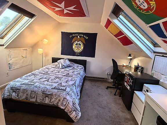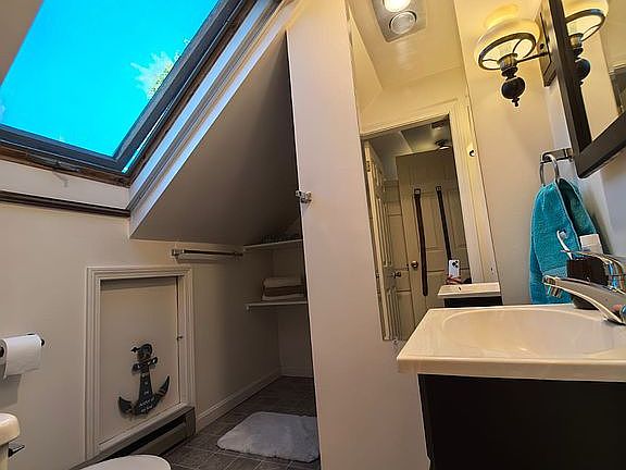 Enjoy outdoor living with two private decks and an automatic retractable awning—perfect for relaxing or entertaining. Inside, cathedral ceilings and skylights provide an open, airy atmosphere filled with natural light.