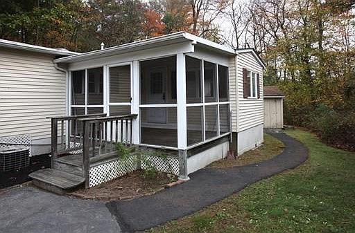 Leisurewoods is an active 55+ community and located at the end of a cul de sac is this spacious, light and bright double wide home. Large kitchen with open layout to dining room and living room. All appliances are in working order, and convey with the sale. Bring your cosmetic finishes and make it your own. Monthly fee includes taxes, curbside trash/recycle pick up, courtesy van, common area androad maintenance, use of clubhouse and in-ground pool. Convenient to shopping, restaurants and highway.