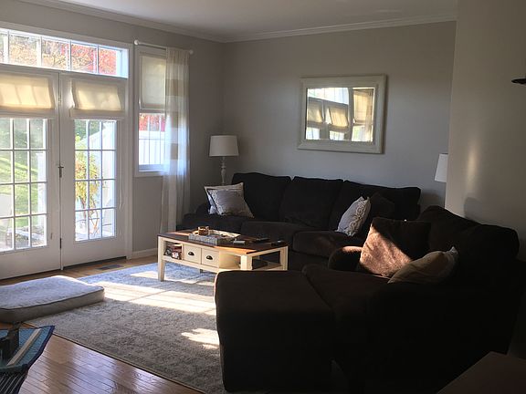 MUST SEE! RENOVATIONS ALMOST COMPLETE! New wood floors, granite countertops, tile backsplash, freshly painted top to bottom! This condo unit at the premier Ridges at Pond Hill will be ready December 1st! Move into a beautiful like-new home for the holidays! Attractive condo units with many amenities, conveniently located. This 1400+ sf unit has two bedrooms, each with its own full bath. Master suite is has large walk-in closet, vaulted ceiling and Palladian window wall looking out over wooded expanse. Spacious living room and dining room with gas fireplace, crown molding and newly refinished, gleaming hardwood floors. French door in living room opens onto deck for relaxation. Eat-in kitchen with stainless steel appliances, pub table and chairs and new wood flooring, granite counters and stone backsplash. Laundry with washer and dryer. Powder room on first floor. Entire unit freshly painted. Additional square footage of living space in Finished basement with an office space (desk and file cabinet included). Lots of closets and storage space. Oversized Garage attached to unit. Community has beautiful pool and pool house for tenant use, and this unit is a just short walk away. Trash pick-up included. This beautiful unit is available in December 2016. Contact Jeanne at harwood6833@gmail.com. (Photos included are from a like unit. ) Includes trash fee.