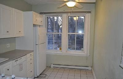 Available : Now This two bedroom, one bathroom, apartment features a living room, dining room, and eat-in kitchen with appliances including a microwave and dishwasher. There is hardwood flooring throughout the majority of the space with tiling in the kitchen and bathroom. The unit has exposed brick walls, ceiling light fixtures, ceiling fans, ample closet space, radiator heat, a fireplace, shared in building laundry and backyard patio. Heat included. On street permit parking. Pets OK. This unit is a four minute drive to the Harvard transit station. Property ID: 206743972