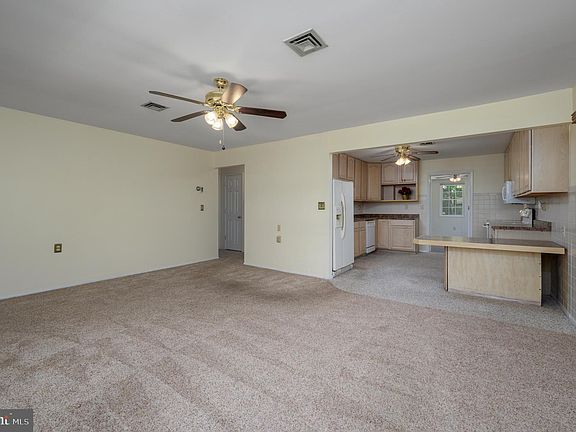 Welcome to this beautiful Expanded Folcroft model in the 55 + Active Community of Leisuretowne. Location, Location, Location is Key... Great Condition and at a Fabulous Price! Just steps away from the Laurel Hall activity center and Pool! This attractive brick front ranch boasts a welcoming open front porch, newer roof, windows, doors and backs to woods! Step inside to a spacious living room with triple windows, wooden blinds , ceiling fan and great views of the front yard and covered front porch area. The kitchen boasts 42" Limed Oak cabinets, providing an abundance of storage, full appliance package and ceiling fan. A sliding glassed pocket door separates the kitchen and the family room /porch area with all new windows that were installed in 2021 and also has an extra large storage closet. Easy access to the backyard is available through a sliding glass door then step out onto a large patio that allows for outdoor entertainment and relaxing views of woods and nature. Back inside are two good sized carpeted bedrooms with ample closet space and ceiling fans. The hallway features the washer /dryer closet and linen closet. Additional storage is available with multiple storage, shelving and attic access within the 1 gar garage. Inside door access, Outside door access and a garage door opener make the garage very accessible . Leisuretowne features a number of amenities: 2 guarded entrances, a fitness center, driving range, putting green, bocce court, shuffleboard courts, tennis & pickleball courts, billiards room, two lending libraries, computer & copy center, lakes for kayaking, canoeing, and fishing walking trails, two recreational parks, two swimming pools, four recreational buildings, and more than 50 clubs and organized activities for your enjoyment. The property is being conveyed "AS IS". Seller will provide a One Year Home Warranty! Don't wait! This one won't last. Schedule your private showing Today and Move In right away!