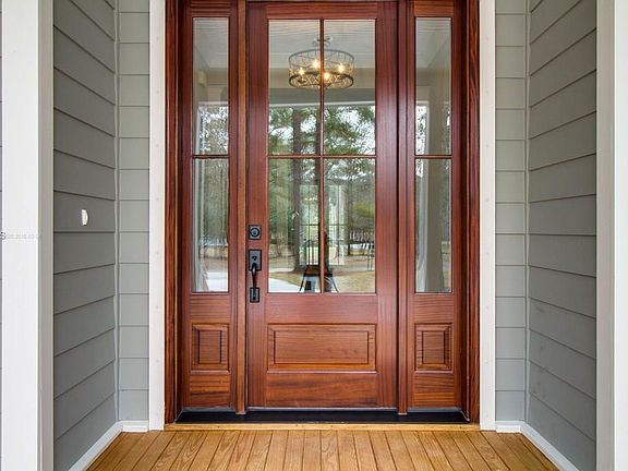 Rare move-in ready NEW construction home in Oldfield. Enjoy the "wow" factor upon entering to find long fairway, lake, and maritime forest views. Luxury construction details include wide plank wood floors, custom millwork throughout, spa-like master bath, gourmet kitchen w/ gas range, granite counters and more. Open floor plan design w/ cathedral ceiling in Great room, multiple guest suites separated from 1st floor master suite, studio/media room, private office, extensive above garage walk-in storage, and full-length screen porch w/ brick fireplace for year round outdoor enjoyment.