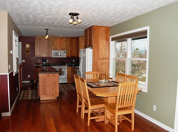 Very nice, well kept home with updated kitchen, windows, blinds & carpet. Great central location with amazing views of Mt. Helena. Kitchen is spacious with custom built in's and center island with bar seating. Large picture windows throughout home. Wood burning fireplace upstairs. Master suite is located down stairs with separate office/TV area and gas stove. Family room in basement is great useable space for large gatherings. Large back deck right off the kitchen. Fenced in back yard.