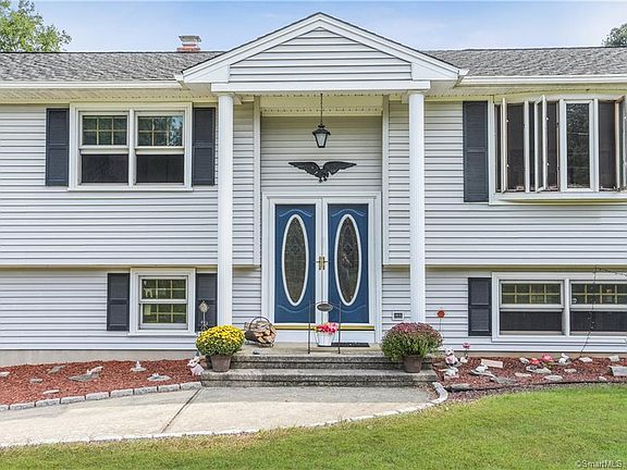 Meticulously cared for extended raised ranch in Great Hill area of Seymour. This expanded raised ranch offers oak floors throughout all the upper bedrooms, living room, dining room, sunroom, den, and oversized family room. The master bedroom has been expanded to include two extra long closets and easily will fit a king size bed along with night stands and bureaus. Two more spacious bedrooms are on main level with oak floors. Kitchen leads into the dining room which leads into the living room which has access to lower level. Surround sound in the wall in main living room. The upper level off the dining room includes an 18 x 24 gorgeous sunroom which gives you plenty of room for family gatherings and for enjoying the view of your private backyard. The lower level includes a full size in-law with full kitchen, dining room, master bedroom and large living room. The oversized garage has plenty of room for two cars, a workbench and work area and can be assessed by the in-law. There are two staircases to the lower level in-law including a spiral staircase. To get into the attic the owner has installed two pull down stairs to reach two different areas of the attic which has plenty of storage space. This home has 5 wall mounted tv's that stay with the home, The generator stays. 3 zone heating. Sunroom and expanded living (2008). Expanded master bedroom (2010) A fantastic home for the family that wants to stay together under one roof.