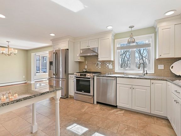 Location, location! Sunny, classic Colonial on cul-de-sac with attached direct entry garage set on 21,435 sf lot lovingly maintained. Private backyard. Newly refinished hardwoods throughout first floor showcase inviting layout designed for easy living. Fireplaced living with recessed lighting open to formal dining and charming sunroom. Kitchen recently updated with lots of cabinet storage above and below granite countertops set off by gleaming stainless appliances and built-in granite-topped eating area. Two coveted first floor bedrooms and full bath round out the first floor. Upstairs offers 4 corner bedrooms with shiny new hardwood flooring throughout and updated second full bath. Newly painted first and second floor. Lower level is fully finished with recreation and work from home space featuring bar area and half bath. Really lovely level yard sited on a timeless cul-de-sac near all the conveniences and attractions of quiet bustle of Woburn. Huge deck. Move-in ready, must see home.