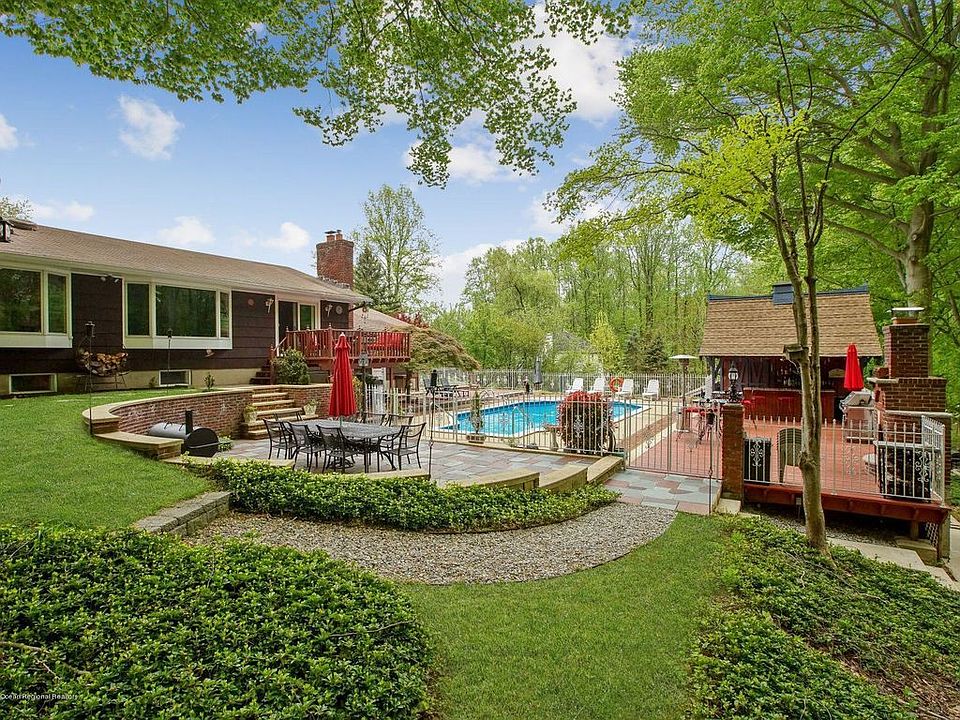 One of a kind! Custom Beautiful 4 Bedroom / 5.5 Bath Ranch plus Detached Studio w/ separate driveway and over-sized 2 car garage, living area, efficiency kitchen & full bath - Mother/Daughter possibilities or space for home office! Main home boasts Huge Dining Room / Living Room / Kitchen area ideal for entertaining! Full finished basement w/great space & 4th Bedroom / Full Bath. All of this on park like setting over looking beautiful pool! Conveniently located for everyday shopping or commuting. Located just minutes from the GSP, NJ Transit Train, PNC Art Center for the bus, Route 35 and much more!!!