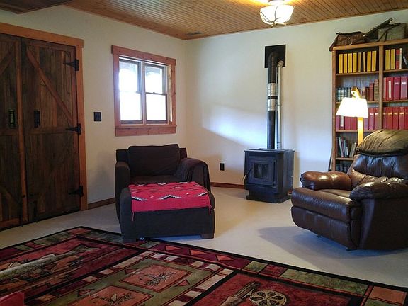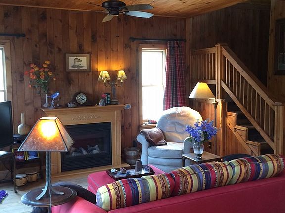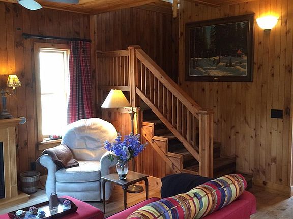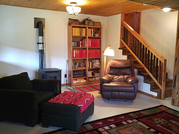 River front acreage, 2304 SQFT completely finished, a bedroom and bathroom on all three levels. Lots of living space. loft could be divided into more rooms if so desired. Lots of outdoor living space with wrap around deck and shaded patio. spectacular panoramic views of surrounding mountains and river. plenty of room to add a garage.