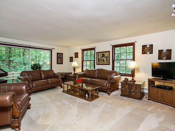 You'll feel welcome in this friendly neighborhood that gets together for cookouts and parties. Circular driveway with crushed white stone and bordered by Belgian blocks, leads the way to this gracious country home in lower Weston. Remodeled and expanded Colonial offers an open floor plan that's ideal for entertaining and family gatherings. A great room boasts cathedral ceilings, wood burning stove, skylights, etc. Family style kitchen opens to double sided raised hearth fireplace while multiple sets of French doors access a 1,000 sq ft deck. This spacious home offers you the choice of 1st or 2nd floor master suite. Great for extended family or home office. Oversized 2 car garage. Well maintained home has been freshly painted too! It's bucolic lower Weston setting is peaceful and convenient.