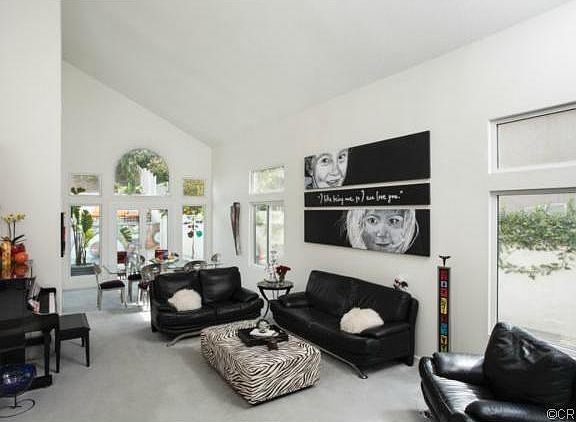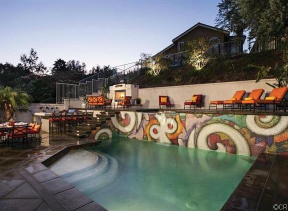 This designer home is light and bright with custom features throughout. The downstairs features vaulted ceilings and is designed for entertaining. The grand entry leads into a spacious living room and formal dining room. The large family room includes built-in surround sound speakers, a 75" high def TV and a custom gas fireplace by artist Gary Simpson. Also includes a den/study, with full bath. The gourmet kitchen is beautifully appointed with GE Monogram SS appliances including; Trivection/Advantium ovens, honed granite counter tops and designer hardware. Upstairs you will find a spacious Master bedroom suite and 3 additional bedrooms. Step out into the resort style living in the backyard that boasts a Pebble Tec saltwater pool with stunning custom tile inspired by contemporary artist Eric Waugh and a 10 person Spa. You will also find a large built-in bbq area featuring a Monogram BBQ, burner and refrigerator. Enjoy the beautiful gas fireplace, on the upper deck, with plenty of room to entertain and lounge. No Mello Roos and very low Association fee!