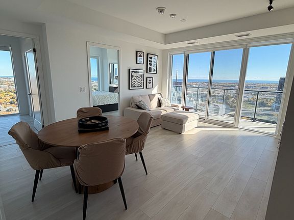 Contemporary Furnished Condo at River & Fifth by Broccolini - in the heart of Toronto's emerging Downtown East, where the pulse of the city meets the calm of the river, discover a new kind of urban living. A harmonious fusion of nature and design, these refined condominium residences blur the boundaries between indoors and out - offering serenity within the rhythm of downtown life.The future is Downtown East. Fully furnished, move-in ready Sun-filled corner unit with unobstructed south facing views, flooded with natural light. Elegant, modern interior Contemporary kitchen featuring premium appliances and finishes Spacious bedrooms with ample storage Includes 1 parking space and 1 locker for convenience. Top notch building amenities include Rooftop terrace with pool, cabanas, firepit, and outdoor dining area, sports lounge with wet bar, state-of-the-art fitness centre with cardio, weights, aerobics, and boxing zones, business centre, guest suites for visitors, 24-hour concierge and secure building access. Well Situated Near Dundas & Queen East - Close To Dvp, Transit, Dinning & More! 94 walk score.