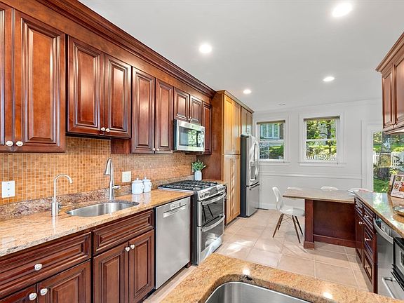 Nestled on a quiet cul-de-sac, your secluded retreat awaits. Built in 2009 and move-in ready, this spacious 4-bedroom, 3-bath home offers the perfect blend of tranquility and city access. Built for entertaining, the open layout seamlessly connects the living/dining area to the gourmet kitchen, boasting two sets of stainless steel appliances, stone counters, and a built-in eating area that opens to the private patio, ideal for al fresco dining surrounded by lush greenery. The main-level offers a guest suite/den with a walk-in closet and ensuite bathroom. Upstairs, the luxurious primary suite features a spa-like bathroom with marble floors, a double vanity, a generous walk-in closet, and tranquil views of the backyard. Two additional bedrooms and a hallway bath. Hardwood floors, tall ceilings, ample natural light. Rarely available attached 2-car garage and a large laundry room. Unbeatable location seconds from the vibrant shops, restaurants, MBTA, easy commute to Boston,Cambridge, parks.