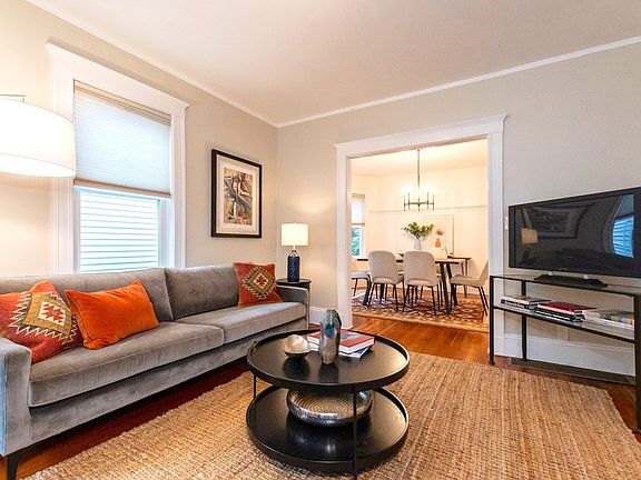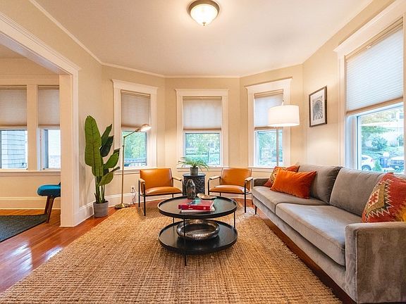 Within Roslindale Square sits this charming 2BR. This vibrant neighborhood hosts an annual block party + other events. The unit is one of two and welcomes you with a spacious entry with custom built-ins and space to kick off your shoes. A stylish & open living/dining room invite casual living. The eat-in kitchen was renovated with crisp white cabinetry, quartz counters & beautiful wood ceiling. A large pantry offers extra storage & secret dog door. Bath was renovated with a modern yet classic feel. The large private back deck seamlessly blends to your exclusive, private fenced yard with beautiful plantings & bluestone patio-perfect for furry friends or entertaining. The garage (with electricity and remote door) is exclusive to Unit 1 and is for storage only or a workshop or art studio. Shared laundry in direct entry basement. The home was renovated in 2013 with new plumbing, electric, heat/Central AC, windows & blown-in insulation. *2021 Hot water heater *2022 Dishwasher