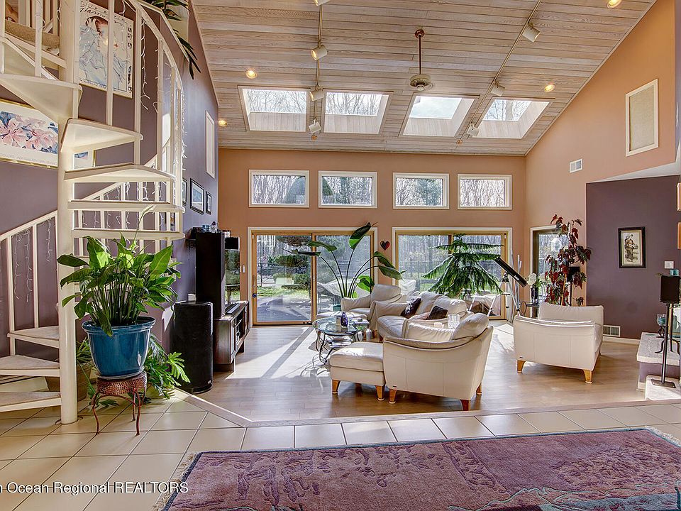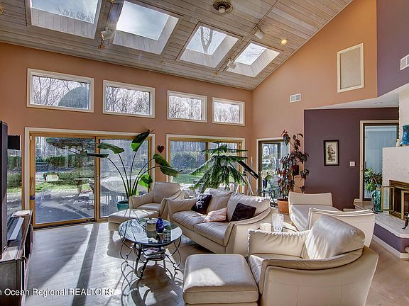 A warm contemporary home in the heart of Morganville in the desirable Reids Hill Estates. Home is a true multi-generational home with private entrance, Welcome foyer opens to a 2 story living room with wood ceiling, skylights, double sided gas fireplace & sliding doors which overlook the beautiful & private yard. European style cabinetry in the kitchen with upscale appliances. Primary suite is on the first level adjacent to the year round sunroom and hot tub outside the sliding doors. There are 2 large bedrooms and a loft area on the second level. Stunning yard with an inground heated Gunite pool, attached jacuzzi, updated pool house with wet bar & full bath. 5 zone heat & AC, whole house generator & new roof. Upgrades too numerous to list. Call today for a tour of this fabulous ho