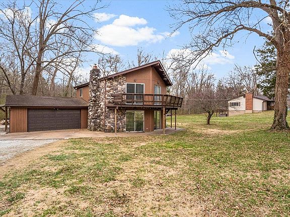 This truly unique 3-bed, 1.5-bath home sits on a peaceful 1.04-acre lot at the end of a quiet dead-end street. with a distinctive exterior and charming details throughout. Inside, you’ll find stunning stone walls, exposed wooden beams, vaulted ceilings, and an impressive stone fireplace. The first floor features an open kitchen, living, and dining area, plus a half bath. Upstairs, three private bedrooms share a full bath. Outside, the large, flat yard is perfect for entertaining, a fire pit, or a vegetable garden. An attached 2-car garage and brand-new steel utility shed offer ample storage or workspace. Just minutes from Highway 44, 15 minutes from Washington, MO, and 30 minutes from Meramec State Park—this is the perfect retreat, currently operated as an Airbnb and known to be a guest favorite!