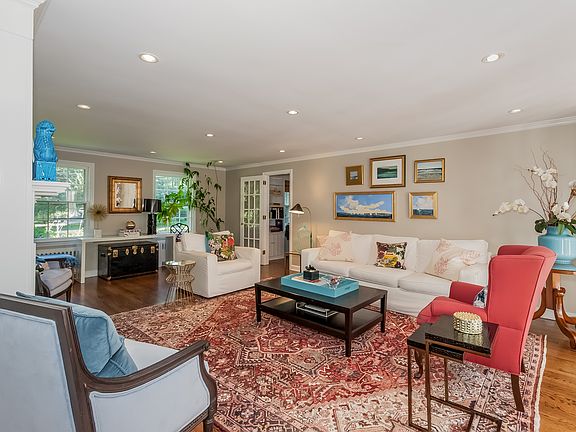 Graciously set on two beautiful level acres in the Tokeneke area of Darien, this classic, period center hall colonial has been totally updated and upgraded to meet all of today's demands while keeping its elegant and gracious origins. The versatile floor plan allows for very diverse use depending on a family's needs. A second story bedroom with en-suite bath and sitting room, next to the rear staircase that has easy access to the side entrance and kitchen, is a great in-law/nanny suite. The family room with a full en-suite bath and adjacent to the inviting, year-round sunroom, can be used as a downstairs bedroom when stairs cannot be used. A small upstairs office with closet can be used as a nursery. The large terrace and professionally landscaped playgrounds provide safety and privacy for children's play and family entertaining. There are exquisite architectural details throughout the whole house. The renovated, open kitchen has tray ceilings, custom built-ins, a sitting area with fireplace, French doors to terrace, bay window with benches for cozy dining, a breakfast bar, desk/computer station and easy reach of the storage and butler's pantries that lead to the formal dining room. The 2 car garage enters directly into the mudroom with cubbies for storage and a side door for service entrance. The master bedroom suite with its coffered ceiling is an oasis of peace and tranquility, with a beautiful tumbled marble bathroom, Jacuzzi tub, steam shower, his and hers closets and the laundry room nearby. By the other 4 bedrooms, a study area with twin desks, built-ins, storage cabinetry affords a quiet area for work time. The upstairs den/playroom for the children is a safe, fun and unique. There is also an extraordinary amount of storage space. This home beautifully balances casual elegance with relaxed warmth and comfort in a most prestigious address in Darien.