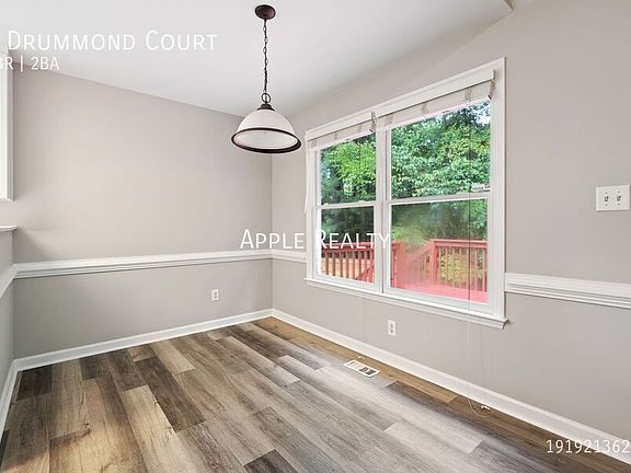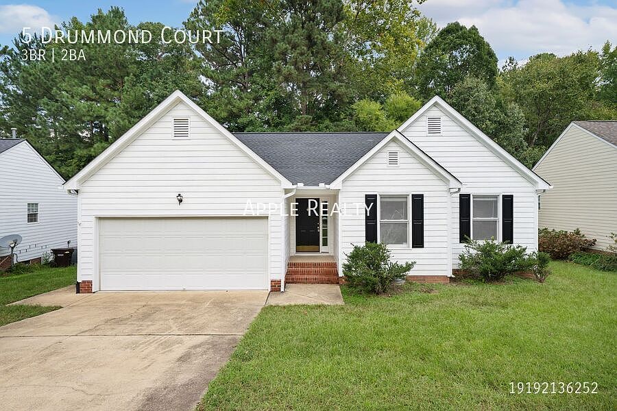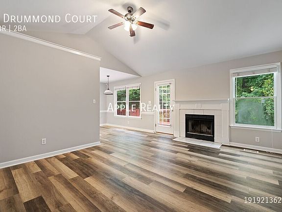 Freshly painted. New LPV Flooring installed in all living areas, New Carpet in the bedrooms. This 3 Bedroom, 2 Bath home is in the Woodlake Subdivision of Woodcroft & has a Kitchen with a Range, Refrigerator & Dishwasher, Separate Dining Area, living room with wood burning fireplace. Master suite with a walk-in closet, private bath, and vaulted ceilings. A large deck overlooks the gorgeous backyard. Washer and Dryer connections. Central A/C and natural gas heat. Minutes from South Pointe and convenient to RTP & local Universities.