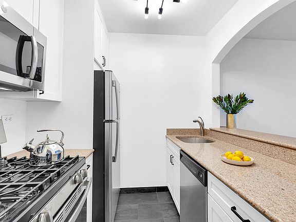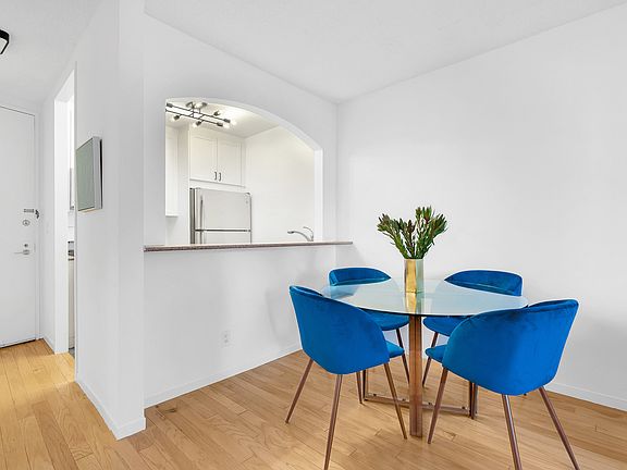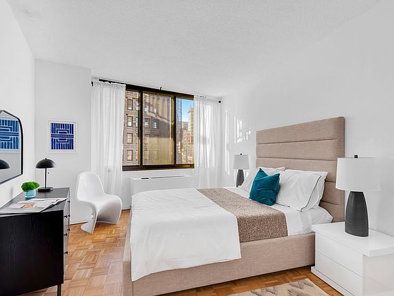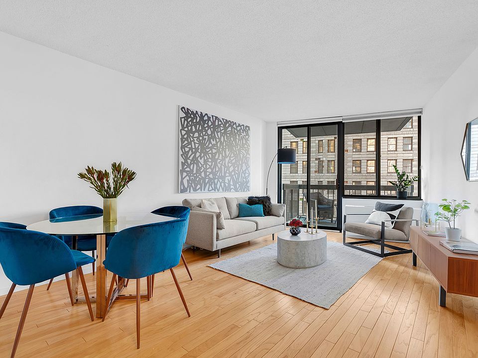 Apartment 14H at 5 East 22nd Street is a sun-filled, high-floor 1-bedroom, 1-bathroom luxury condominium located in the heart of Flatiron right across from Madison Square Park and surrounded by all the best the city has to offer. Well-proportioned, the nearly 20' open entertaining expanse offers plenty of room to dine with white oak hardwood floors, an open kitchen, a private balcony and west-facing floor-to-ceiling windows that draw in lovely natural light and showcases open city and oblique Park views. The open kitchen features a breakfast bar for casual dining, new floors and stainless appliances including a dishwasher, built-in microwave and new gas range oven. The bright bedroom is very spacious spanning over 17 feet with open city views. The bathroom was recently renovated with new vanity, light fixtures and flooring. The entry foyer provides additional storage including a huge walk-in coat closet. There is through-wall air conditioning and heating and very generous closet storage throughout. There is no shortage of comfort and convenience in this beautiful Madison Green home or pied-a-terre with luxury amenities and excellent services. The residents of Madison Green enjoy excellent service with full-time doorman, concierge and resident manager. Fabulous building amenities include impeccably redone lobby, adjacent courtyard with picnic tables, laundry on every floor, residents-only gym and sauna, The Madison Club entertainment lounge, imaginative playroom, dry cleaning/valet, bike and locker storage, 24-hour garage, and lobby ATM. Pets are permitted.